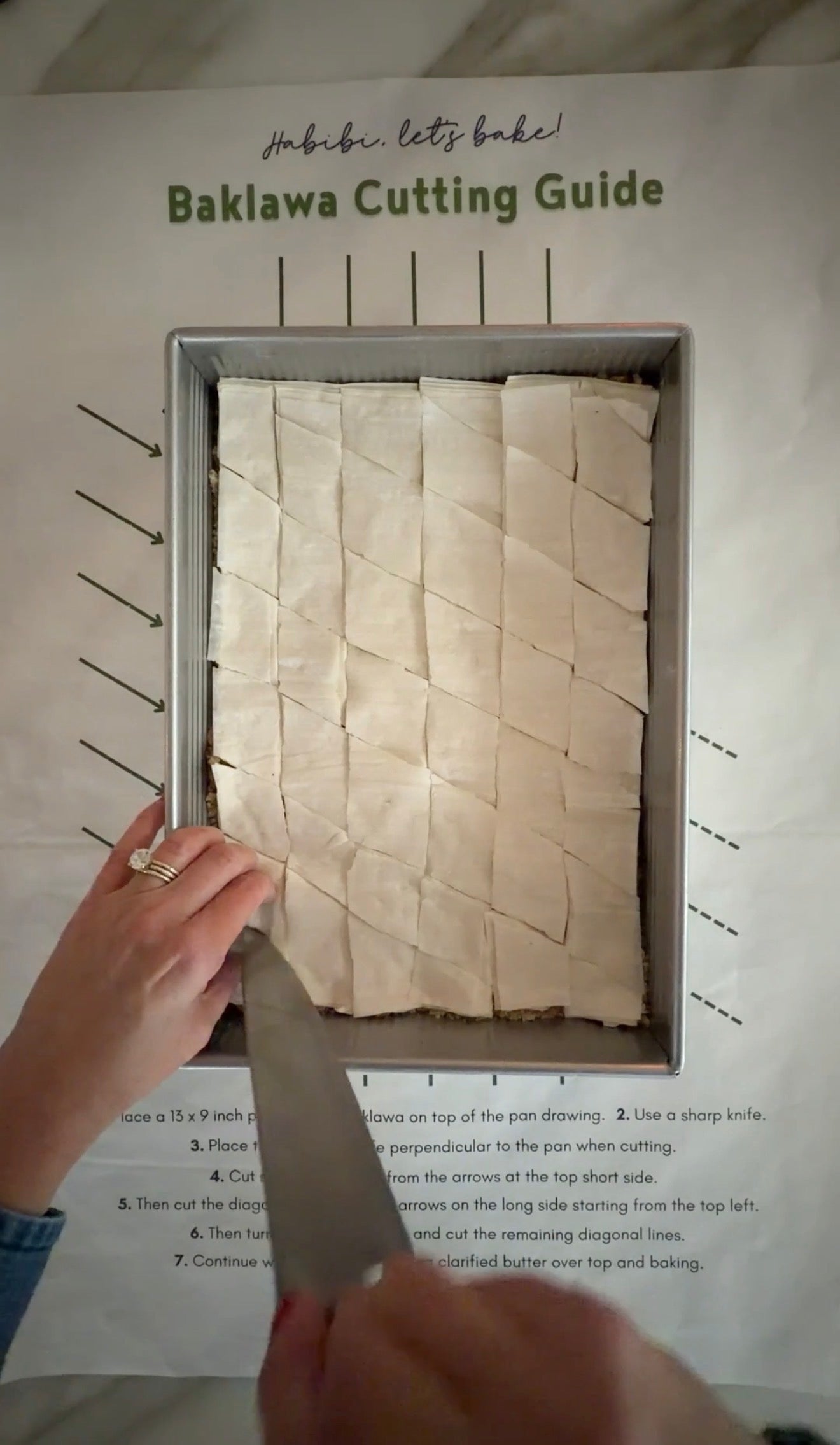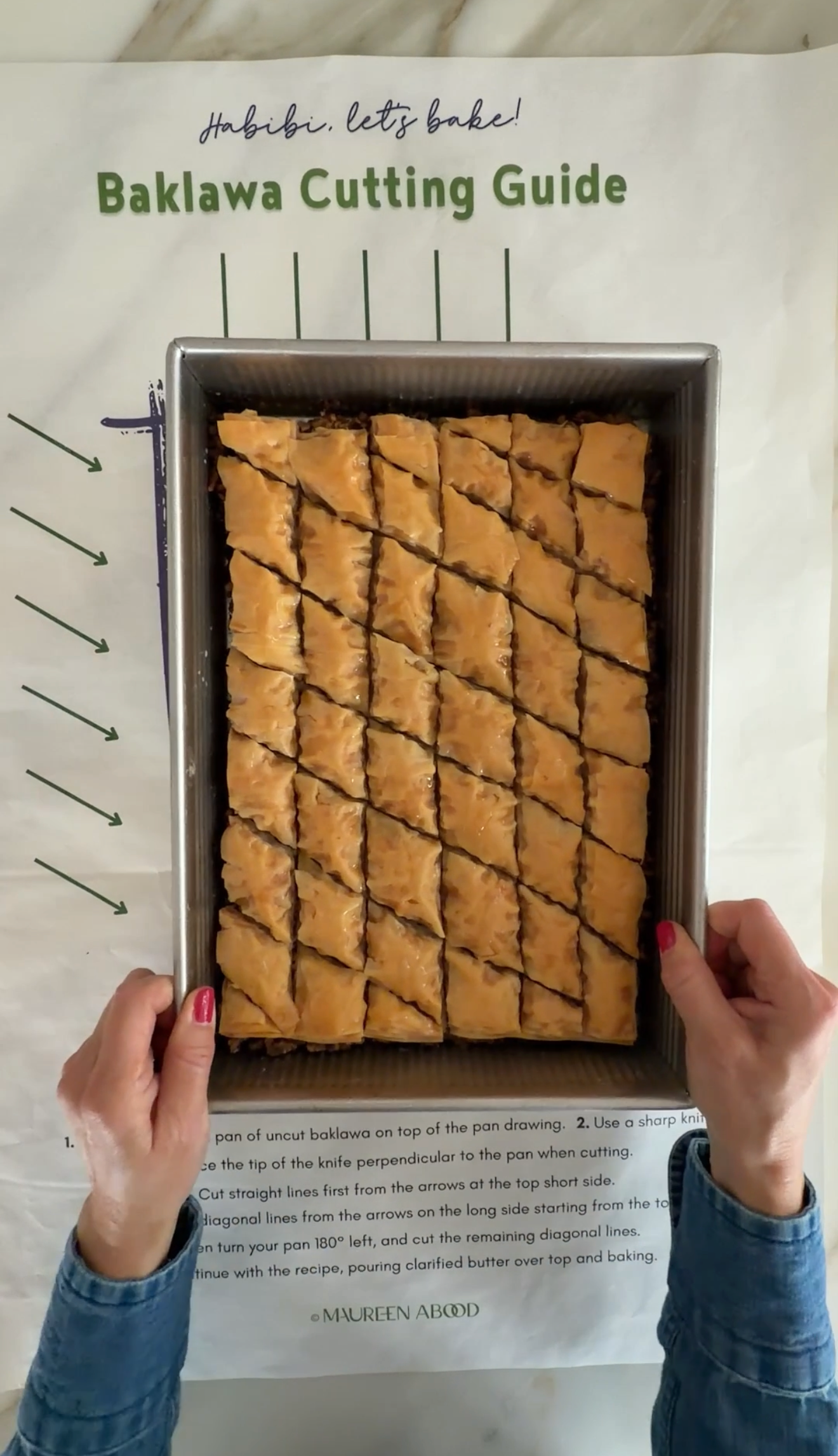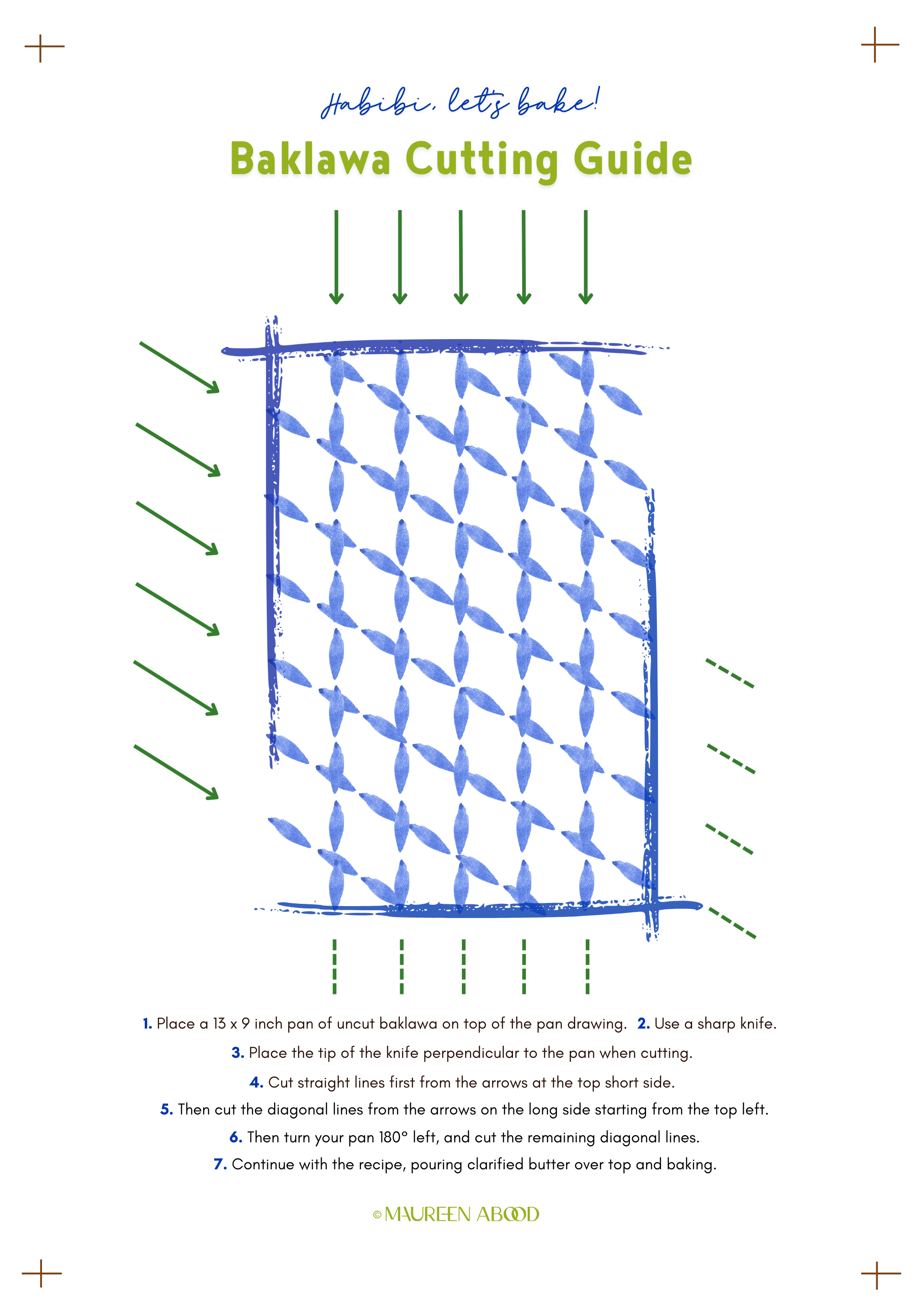This ingenious guide helps us cut even, perfectly-shaped diamonds for baklawa (baklava)! You won't believe how lovely your diamonds can be using Maureen's Baklawa Cutting Guide.
