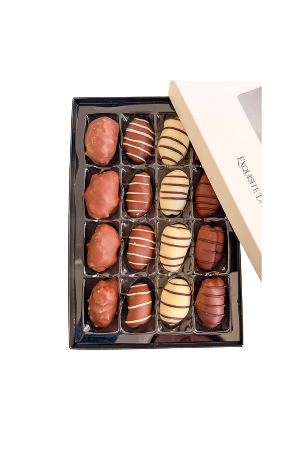 Confections of the highest order! Our Chocolate Covered Dates are a Lebanese tradition. These beauties boast big, rich, soft dates filled with nuts and covered in assortment of chocolates: white chocolate, milk chocolate, and dark chocolate.