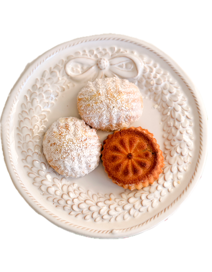 Taste and enjoy the iconic cookie the Lebanese adore! This generous box of ma'amoul holds three traditional varieties of the filled cookies: with dates, walnuts, and pistachios, all enveloped in a meltaway shortbread crust and gently fragrant with flower waters.