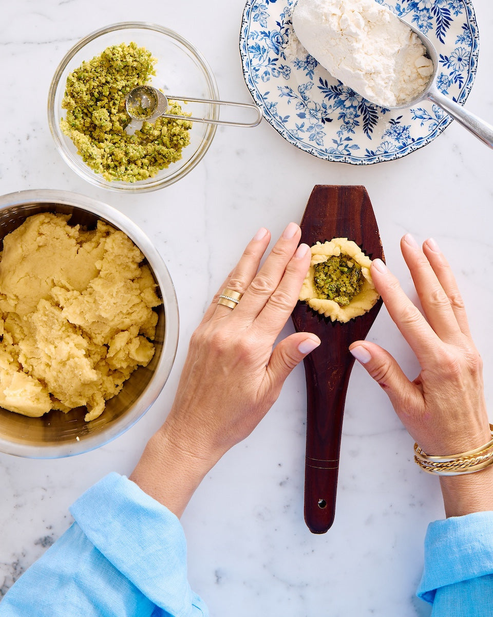 Ma'amoul molds are beautiful tools for shaping and baking traditional Lebanese cookies. Ma'amoul is a shortbread-style cookie with various fillings, including nuts and dates. The cookie is so iconic, it graces the cover of my Lebanese Baking cookbook!