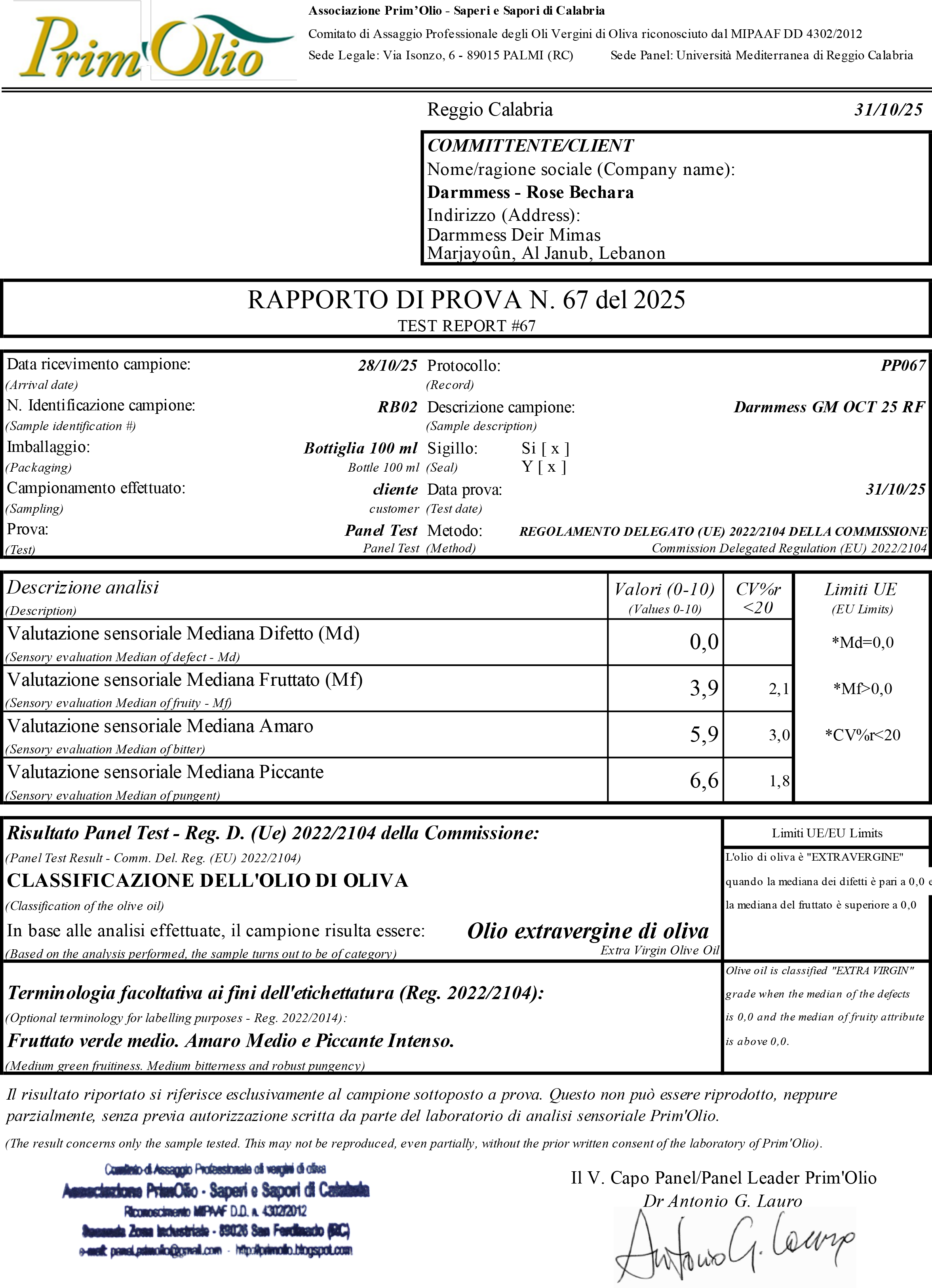 With an outstanding Organoleptic Score of 92/100, Darmmess ranks among the finest olive oils globally. Its elevated polyphenol concentration of 847 mg/kg makes it not only gastronomically remarkable, but also beneficial for daily wellness.